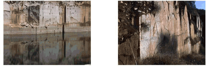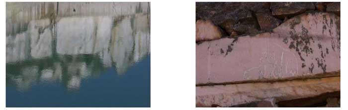 Marmaros was "rediscovered" during a joint residency in Portugal in August 2008. We were situated at OBRAS in the Alentejo region of the country near the towns of Estremoz, Borba and Evora. Driving from the Spanish border towards Estremoz for the first time we saw what appeared to be a white city shimmering on a distant hill. The mirage dissolved within seconds to reveal blocks of marble, piled skywards. As we drove on the presence of marble in the region was hard to ignore. Yet the marble industry had been in decline for a number of years. Out of 400 quarries only a handful were in working order. The rest remained like potchmarks on the landscape.Companies, under obligation to fill in fully quarried sites, had purposefully left a small amount of rock in each one to save on remediation costs. As a result, these open pits were a locus of bad feeling and used as fly-tipping sites. It’s partly this that prompted us to explore them anew, and partly their structural magnificence. As outsiders, with no prior knowledge of Portugal´s industrial past, it was easy for us to imagine them as rock cut cathedrals, positive constructions as opposed to negative remains. We were struck by the architectural suggestiveness of the sites and thought, “what if these weren’t quarries, but remnants of a prehistoric civilization?”