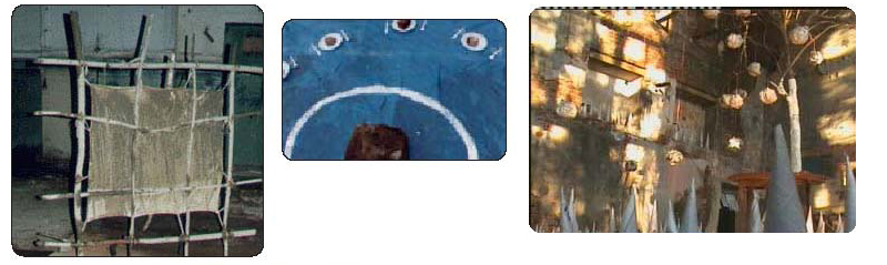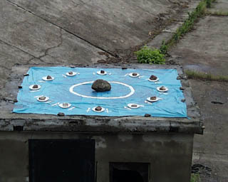 Working together for a week, the artists built installations in the derelict buildings and on the river bank. The site lies on the low ground beneath the upper (old) town. The site is fully visible from the city’s modern core on the far side of the River Oka – from both of the bridges – but the access road ends by the ruined Romadonovsky railway station (the modern station is on the other bank) and peters out into a dirt road. So the site has the paradoxical quality of being constantly visible yet largely unknown and unexplored. Again, the role of the artists was to make the “invisible” visible.