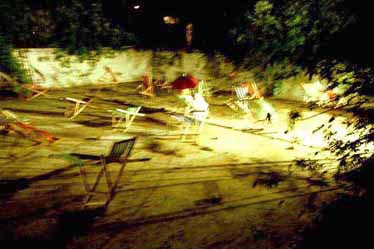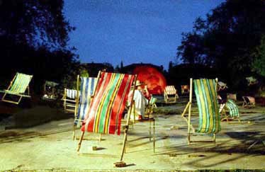 where the deckchairs should seem out of place suspended across an