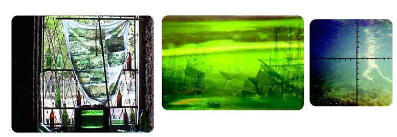 In “Bridges of St Petersburg,” which was projected on the rough bare wall of the storehouse, she went on to deal with another almost archetypal substance: the body of water that surrounds and creates the city: the rivers Moyka, Fontanka and Neva, and the web of canals. The everpresent consciousness of water is counterpointed by the mechanistic rhythms of the thirteen great bridges on the Neva, which open and close nightly to allow access to the sea. Installed in the storehouse, the film “Bridges of St Petersburg” was an environmental montage loop that mixed classic film footage with present material, fusing past and present representation of key emblems of St Petersburg.